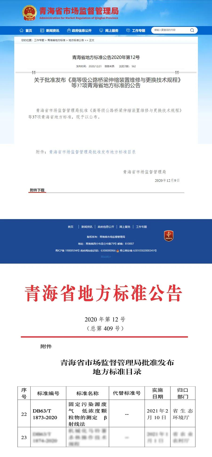 2020年12月9日,青海省市场监督管理局正式发布了“DB63/T 1873-2020 《固定污染源废气 低浓度颗粒物的测定 β射线法》”。此标准是明华电子继参与起草山东地标“DB37/T 3785-2019”以来第二项参与起草的烟尘直读相关标准。