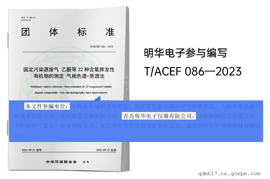 近日,T/ACEF 086—2023《固定污染源废气 乙醛等 22 种含氧挥发性有机物的测定 气相色谱-质谱法》正式实施,明华电子有幸参与此项标准的编写工作。接下来,小编带您详细解读此标准。