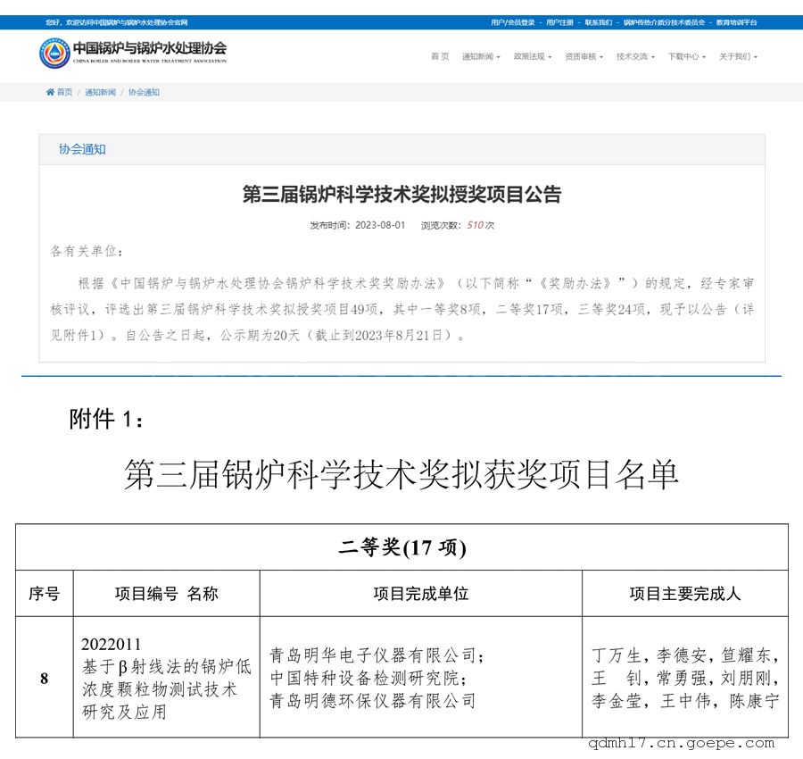 2022年,由中国特种设备安全与节能促进会发布的CPASE PT 016—2022《锅炉低浓度烟尘(颗粒物)测定 β射线法》正式实施,明华电子作为唯一一家仪器制造商参与了标准的起草编写工作,此次获得中国锅炉与锅炉水处理协会认可,可谓实至名归。