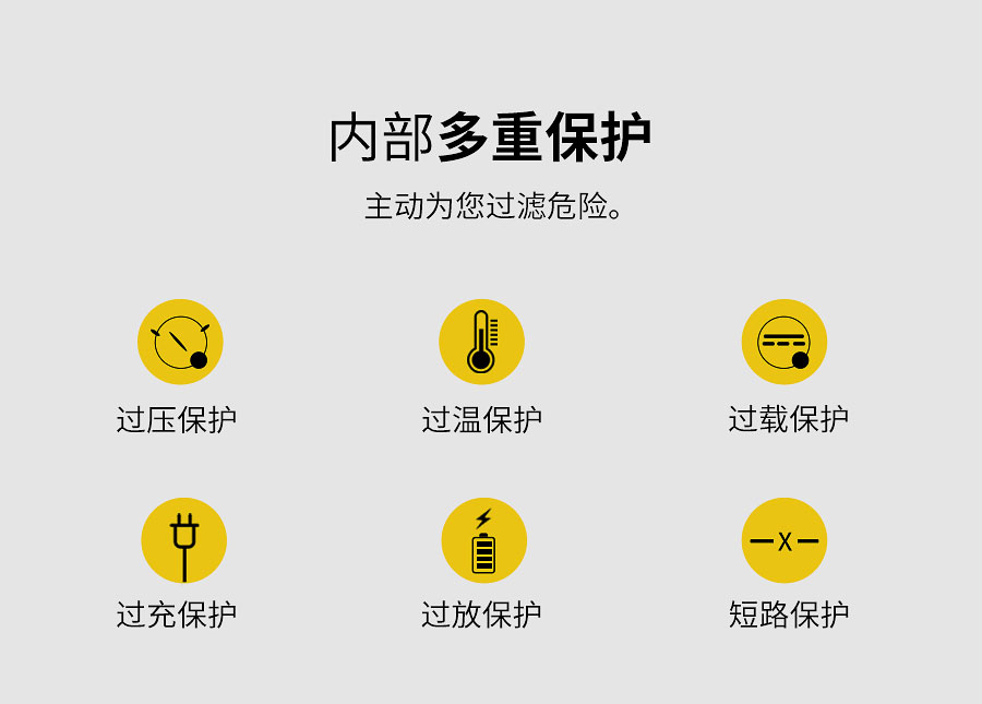 电池组独立过压、过温、过载、过充、过放、短路保护。