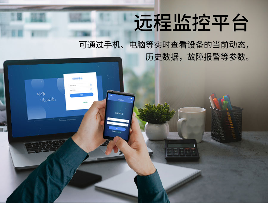 可通过手机、电脑等实时查看设备的当前动态,历史数据,故障报警等参数。