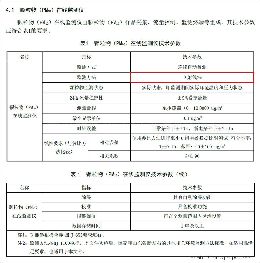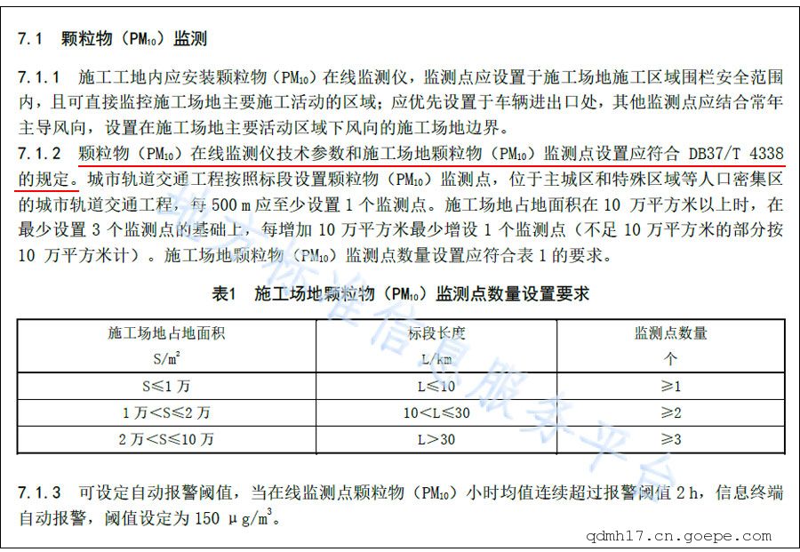 颗粒物(PM10)在线监测仪技术参数和施工场地颗粒物(PM10)监测点设置应符合 DB37/T 4338的规定